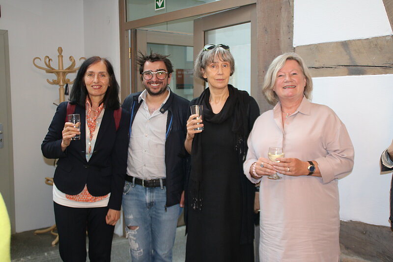 Im Anschluss an die Veranstaltung hatten die rund 30 Gäste Gelegenheit, miteinander ins Gespräch zu kommen. Im benachbarten Bang-Haus waren vom Garten-Team der Otto-Ubbelohde-Stiftung ein leckeres Buffet und Getränke bereitgestellt worden, und der Vorsitzende des Kulturvereins Goßfelden, Gangolf Seitz, sorgte für musikalische Unterhaltung mit flottem Jazz auf dem Flügel.